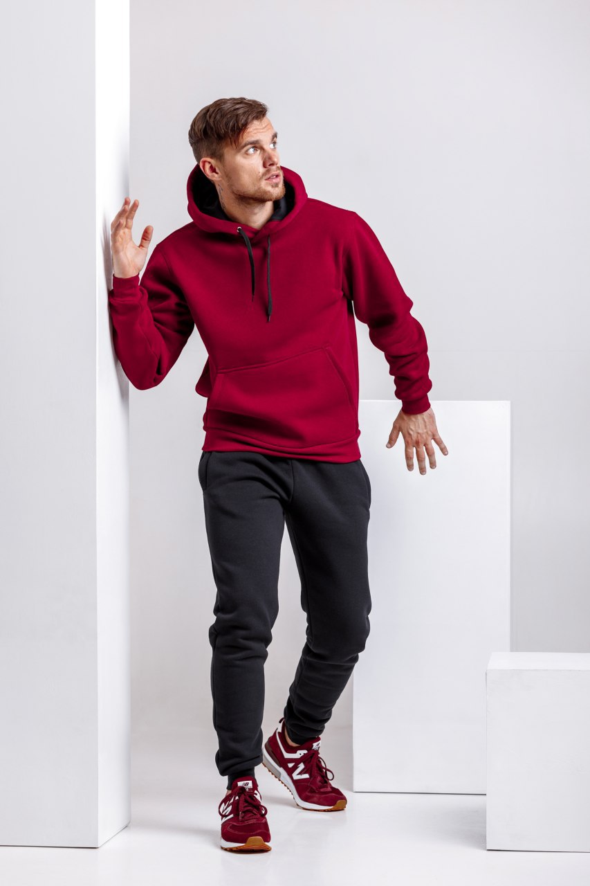 Бордовая худи с капюшоном на флисе, унисекс, осень-зима
