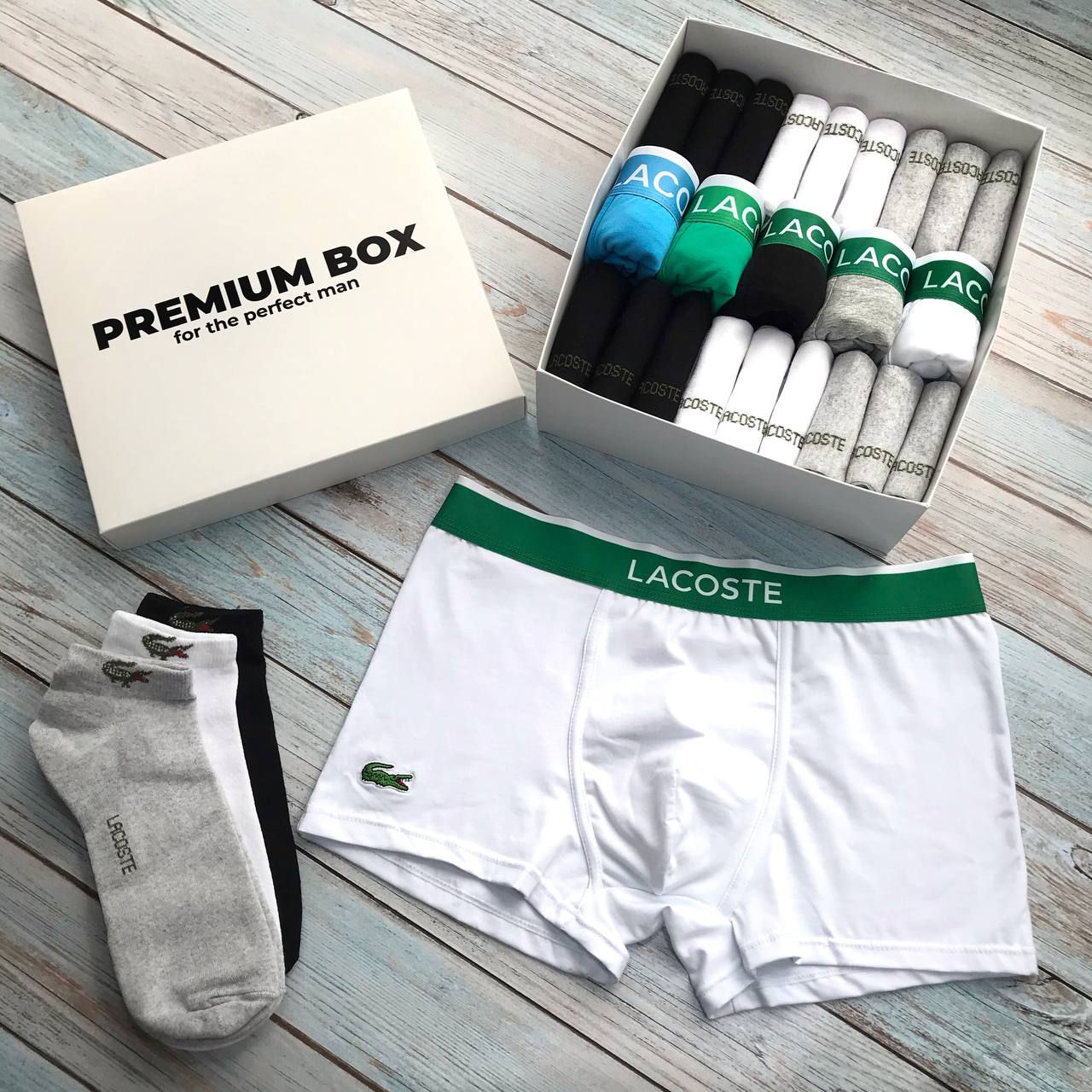 Набор мужских трусов и носков, мужское белье Lacoste в коробке PREMIUM BOX.