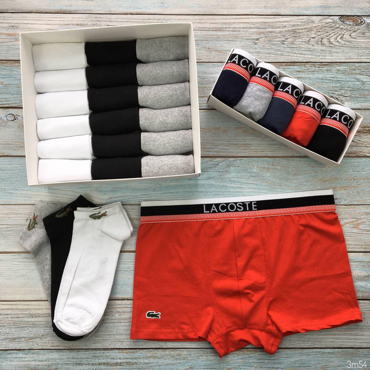 Набор мужских трусов и носков, мужское белье Lacoste в коробке PREMIUM BOX.