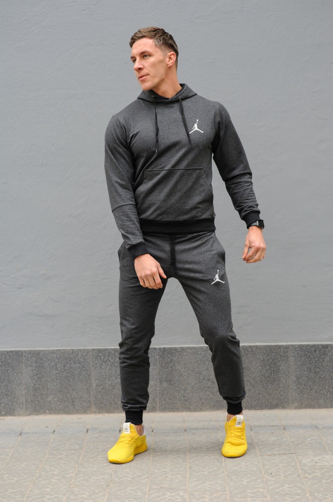 Мужской спортивный костюм Jordan — худи и штаны, цвет темно-серый, весна-осень