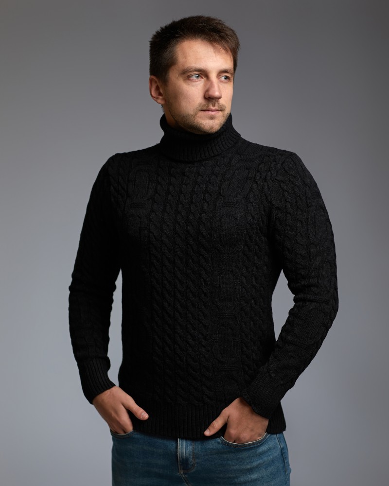 Теплый мужской свитер с узором "Цепи", цвет черный