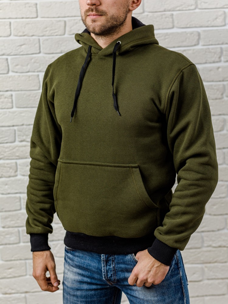 Худи мужская в цвете Хаки, на флисе (осень-зима)